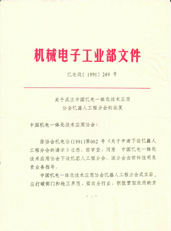智能机器人分会是从事机器人研究开发、加工制作及应用工程领域内的企事业单位、大专院校及有关团体自愿组成的全国性社会团体。于1992年5月在北京成立,英文名称为Robot Engineering Sub-Association, 现有国内外会员单位160余家。